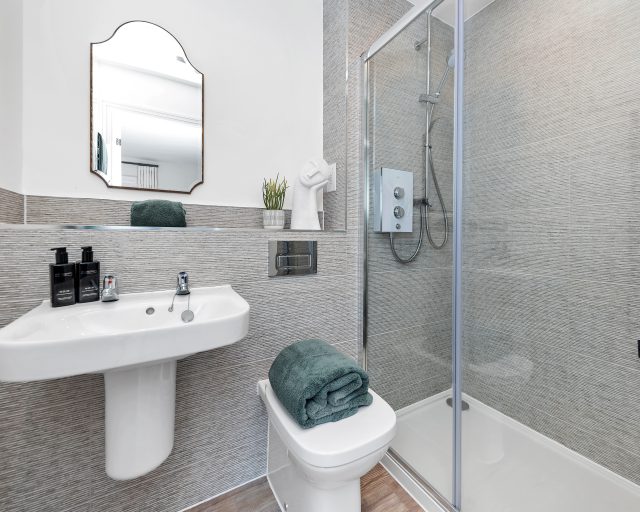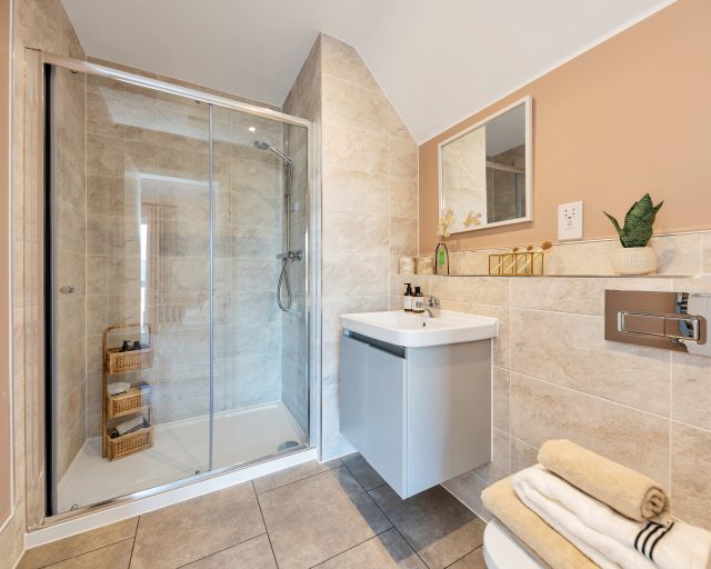 - High gloss vanity units to family bathroom and en suites (houses)