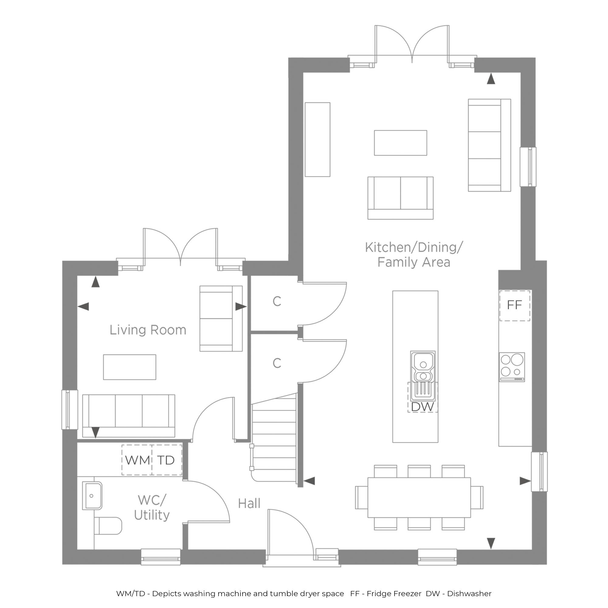 - Patio doors from living room & kitchen/diner/family room