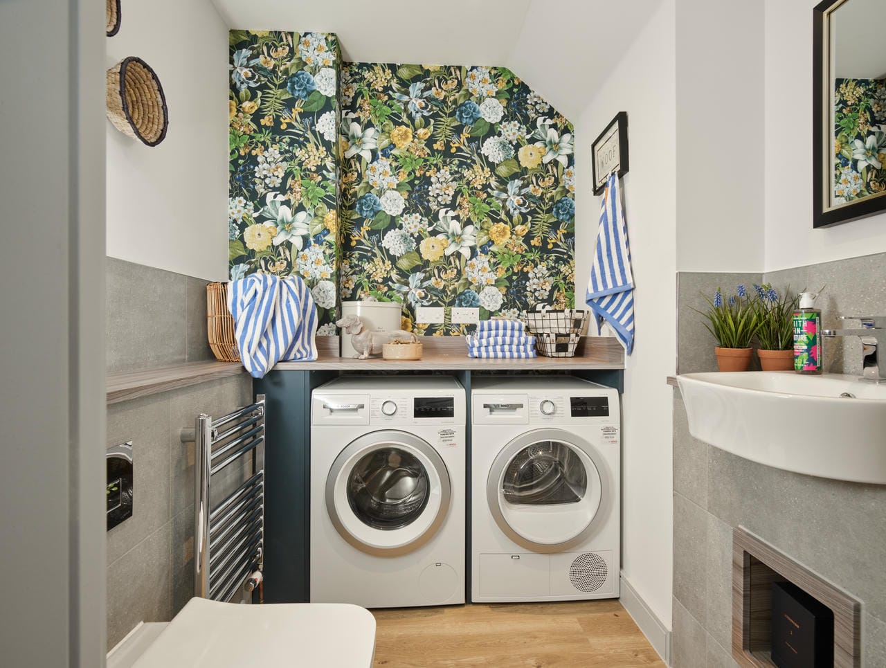 The carefully designed modern kitchen is at the heart of your new home. Stylish handle-free soft close drawers and cupboards, impressive integral Bosch appliances and elegant lighting give a luxury feel. Stainless steel sinks with chrome mixer taps sit alongside beautiful worktops. Whether you are cooking for one or entertaining friends, you’ll love spending time in your stylish kitchen.